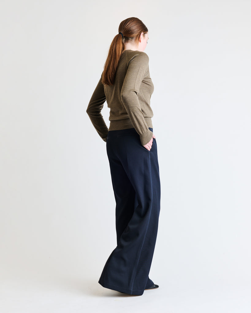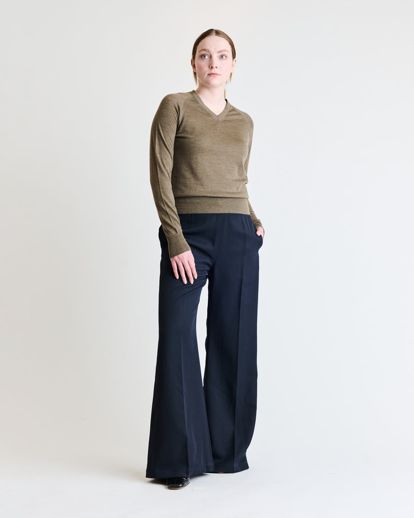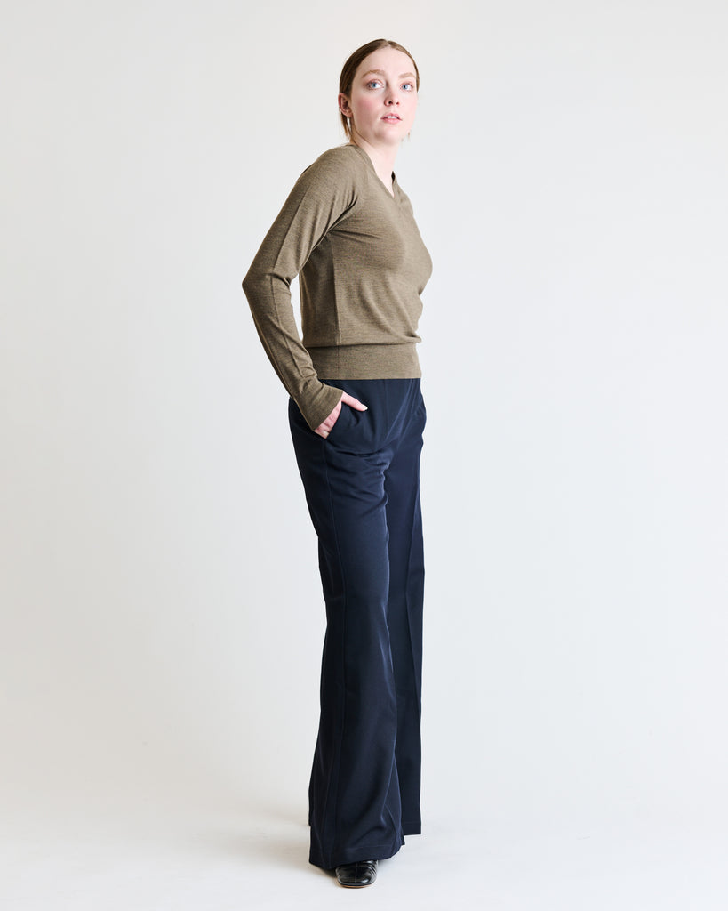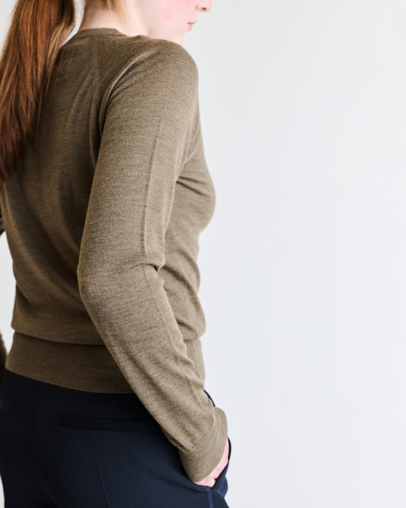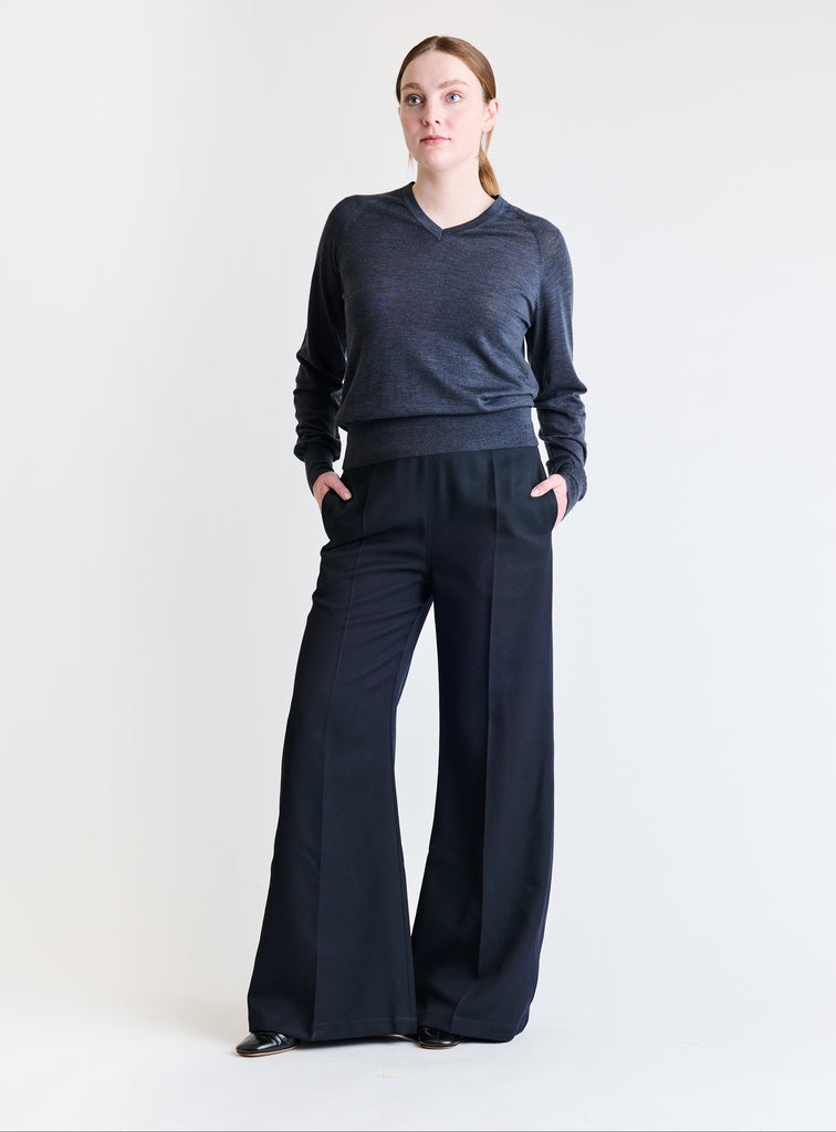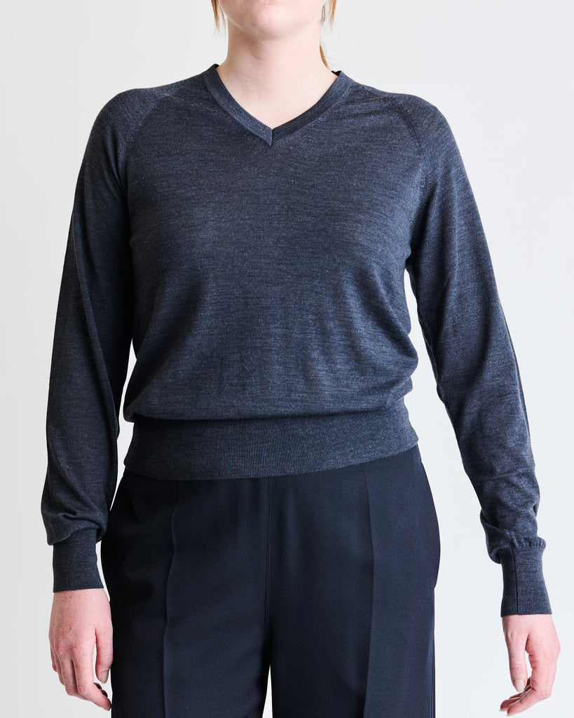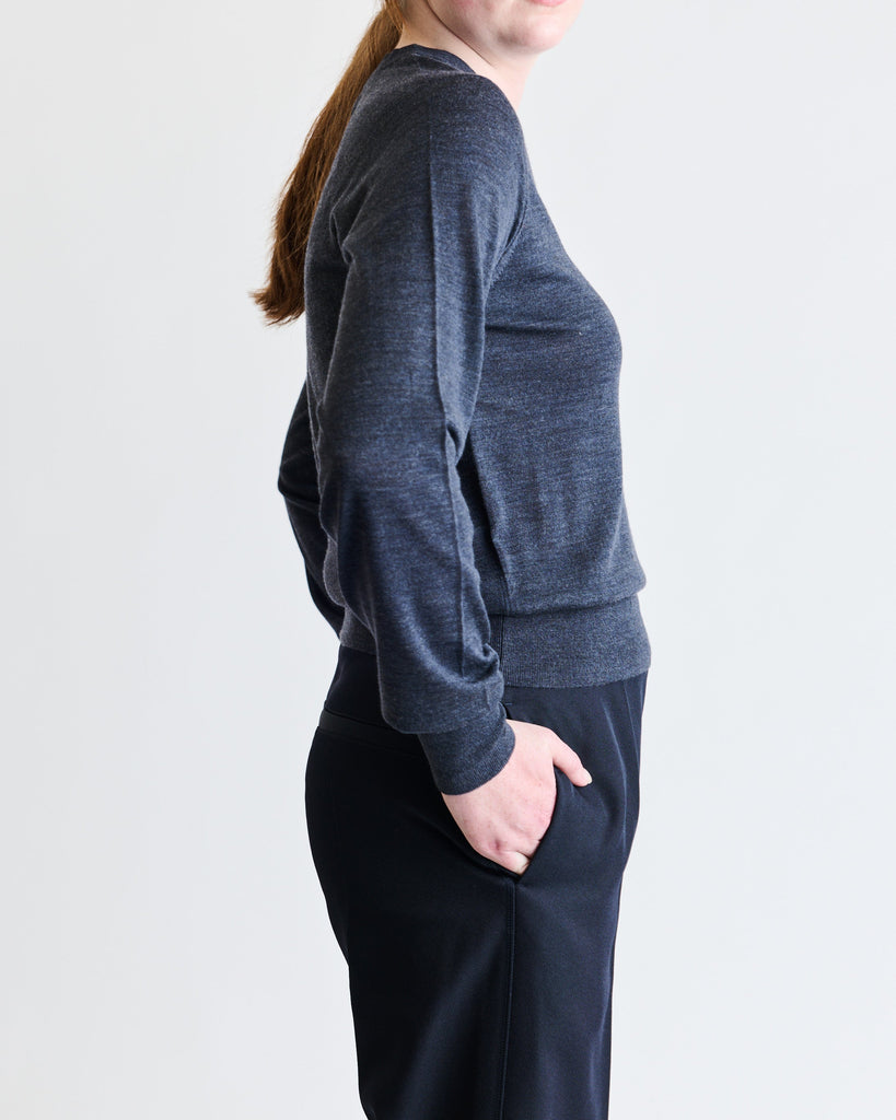 Jumper in grey mélange wool cashmere blend with a high slouched neck.