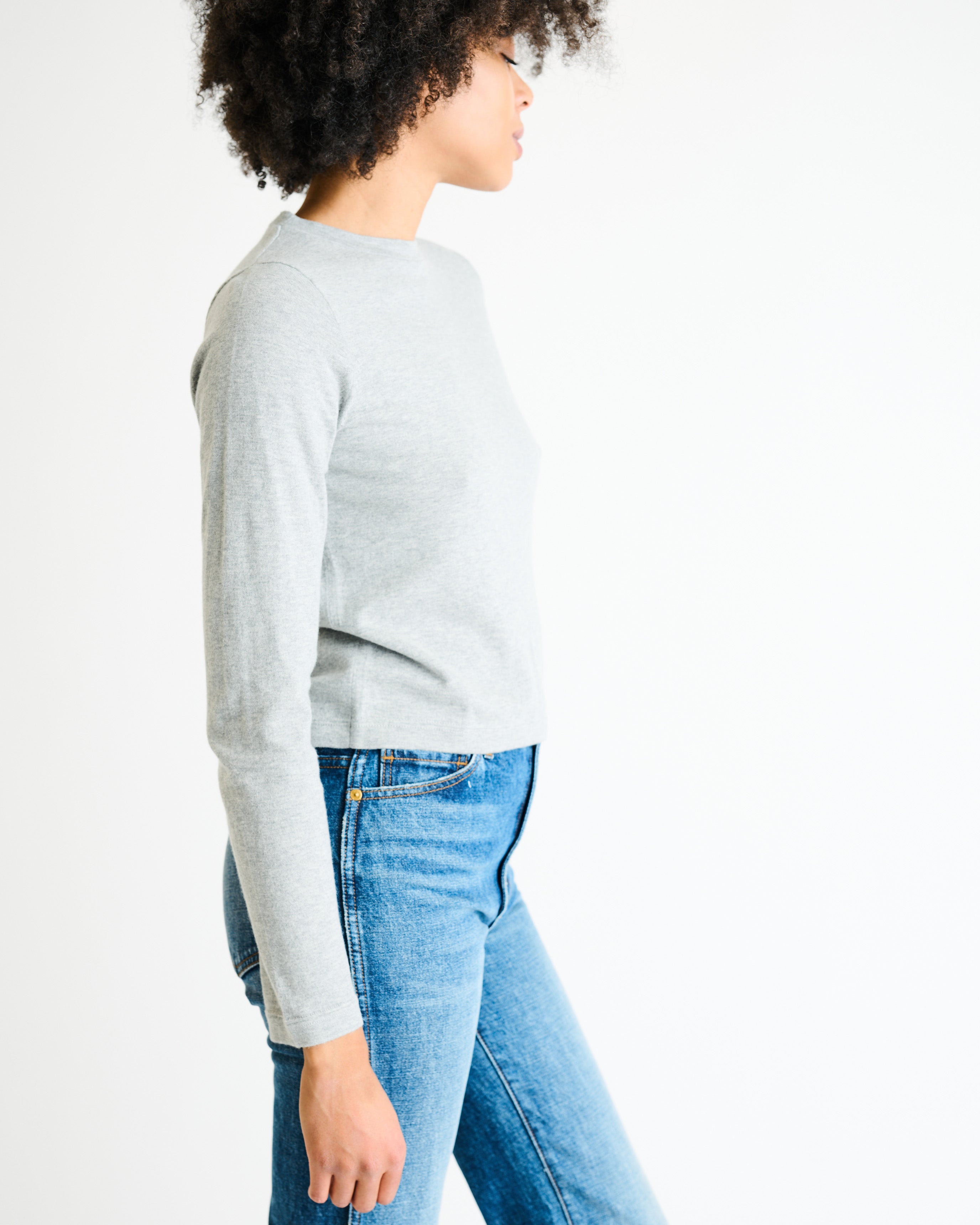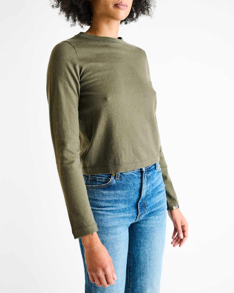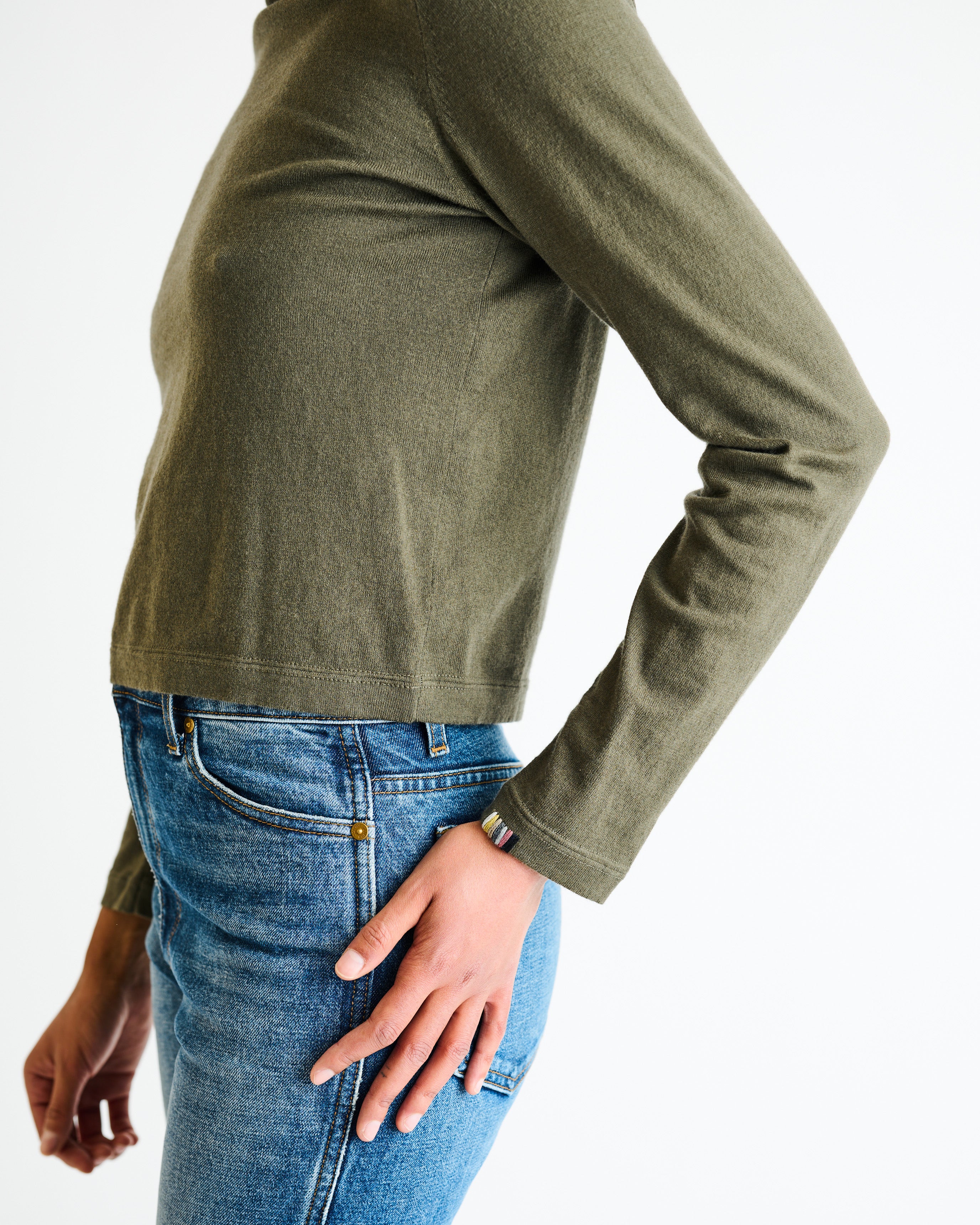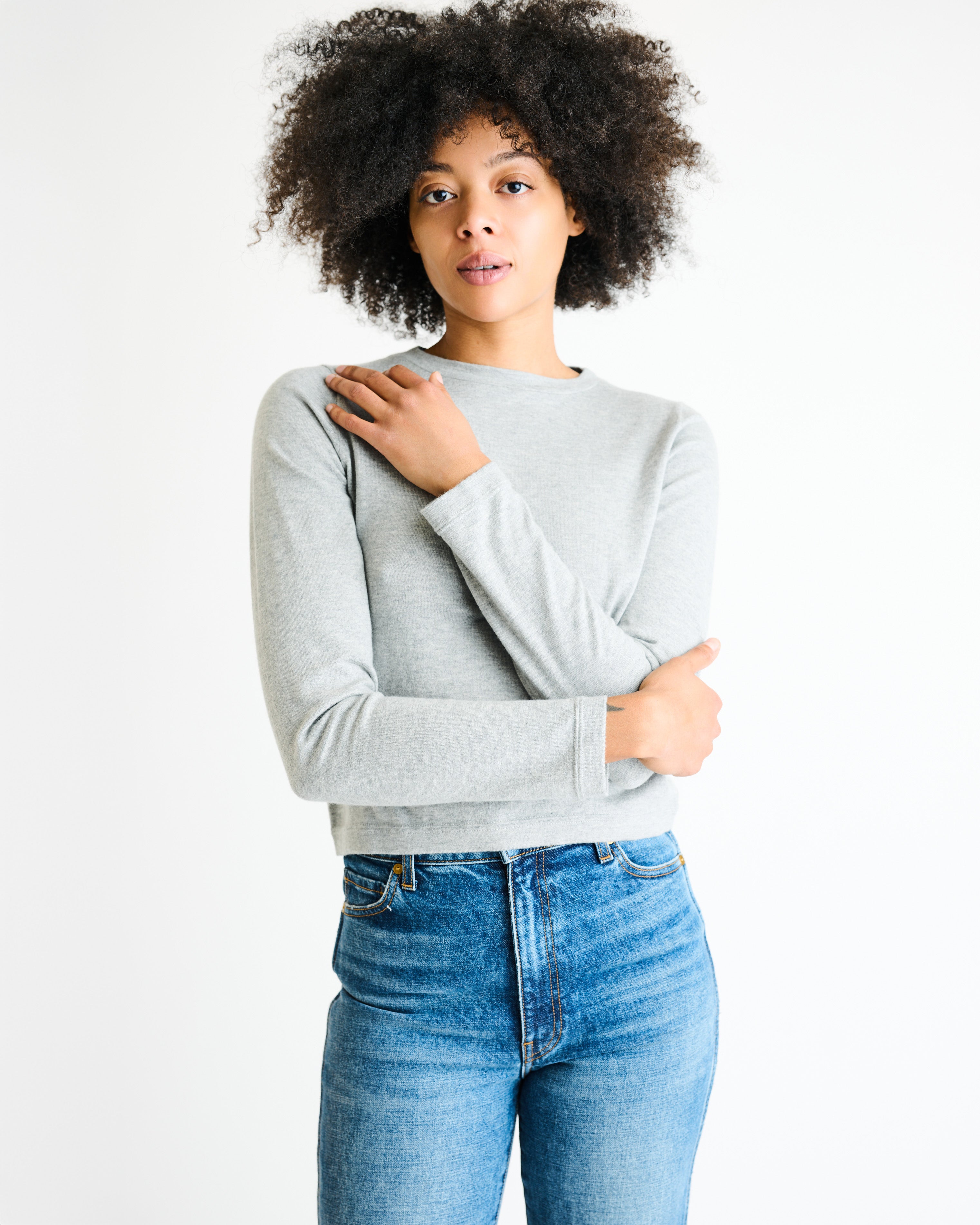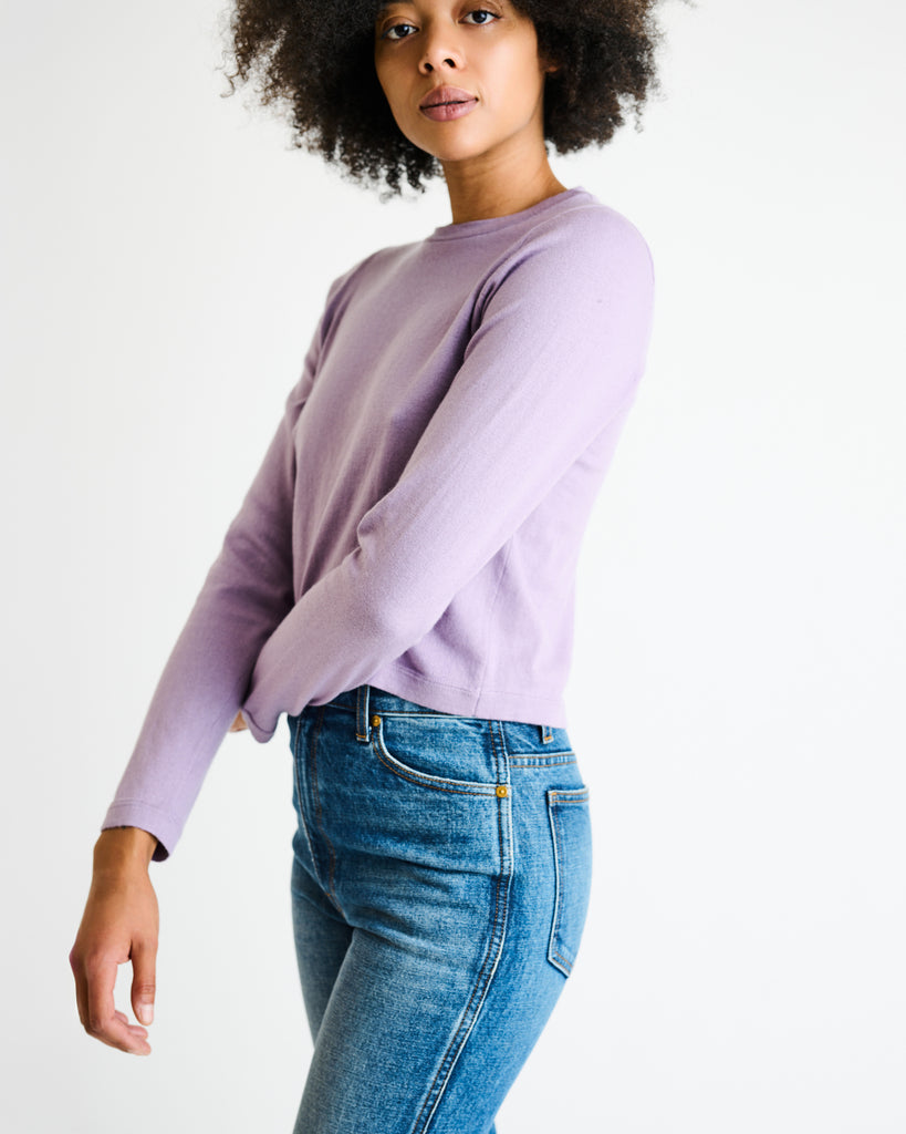 An essential long-sleeved crew-neck t-shirt in our breathable cotton-cashmere blend, fusing the rich softness of cashmere with the airy crispness of cotton. A close relative of the tina t-shirt style, the lisa top features long sleeves and a boxy, square fit.