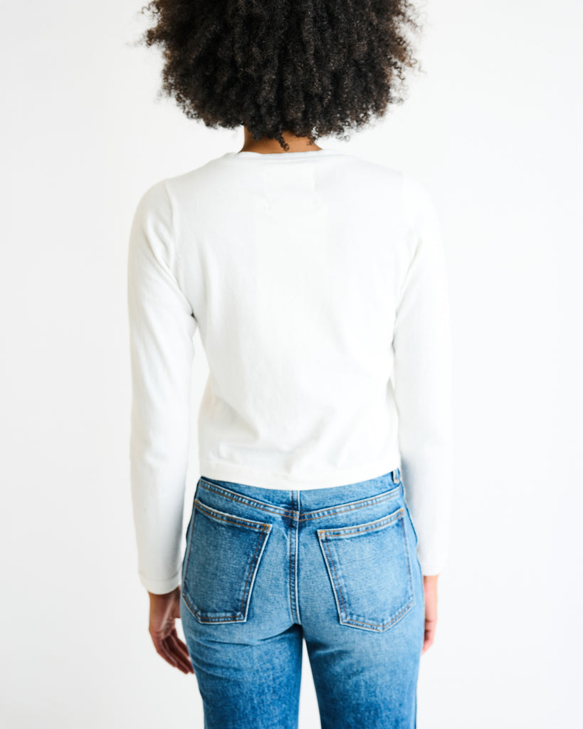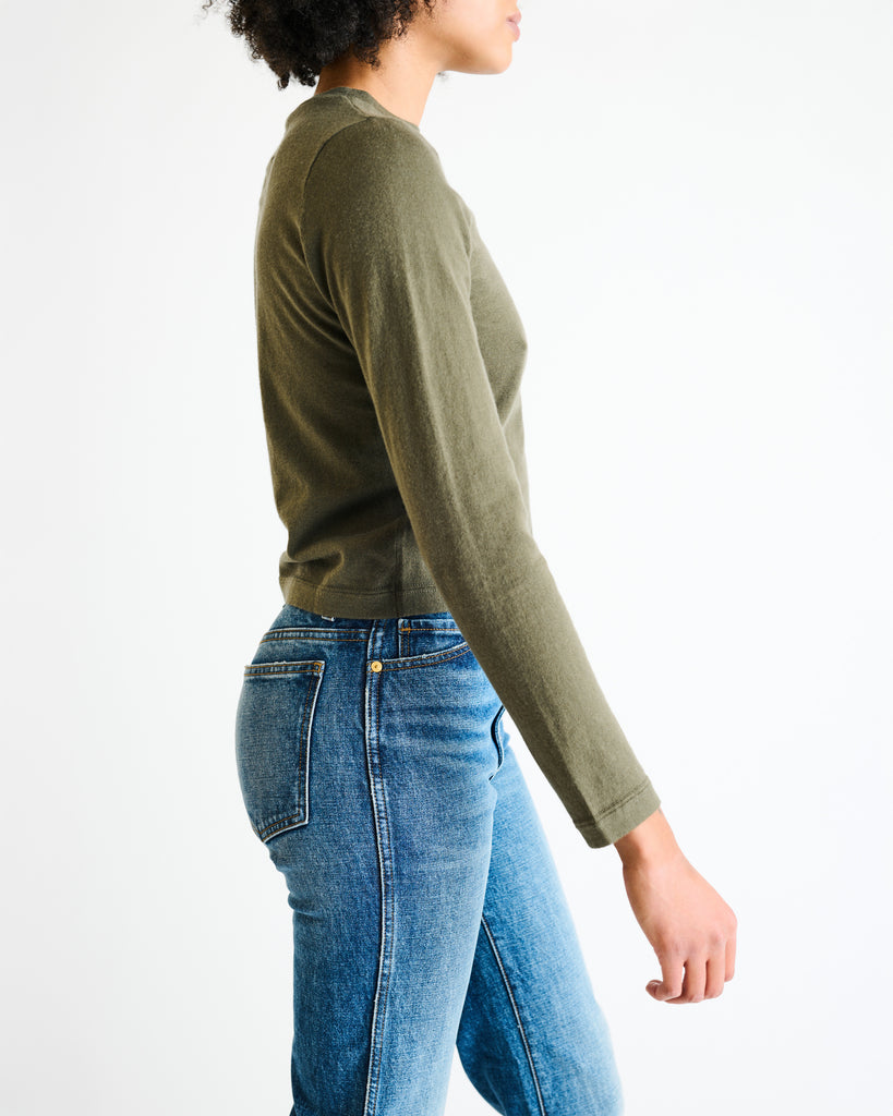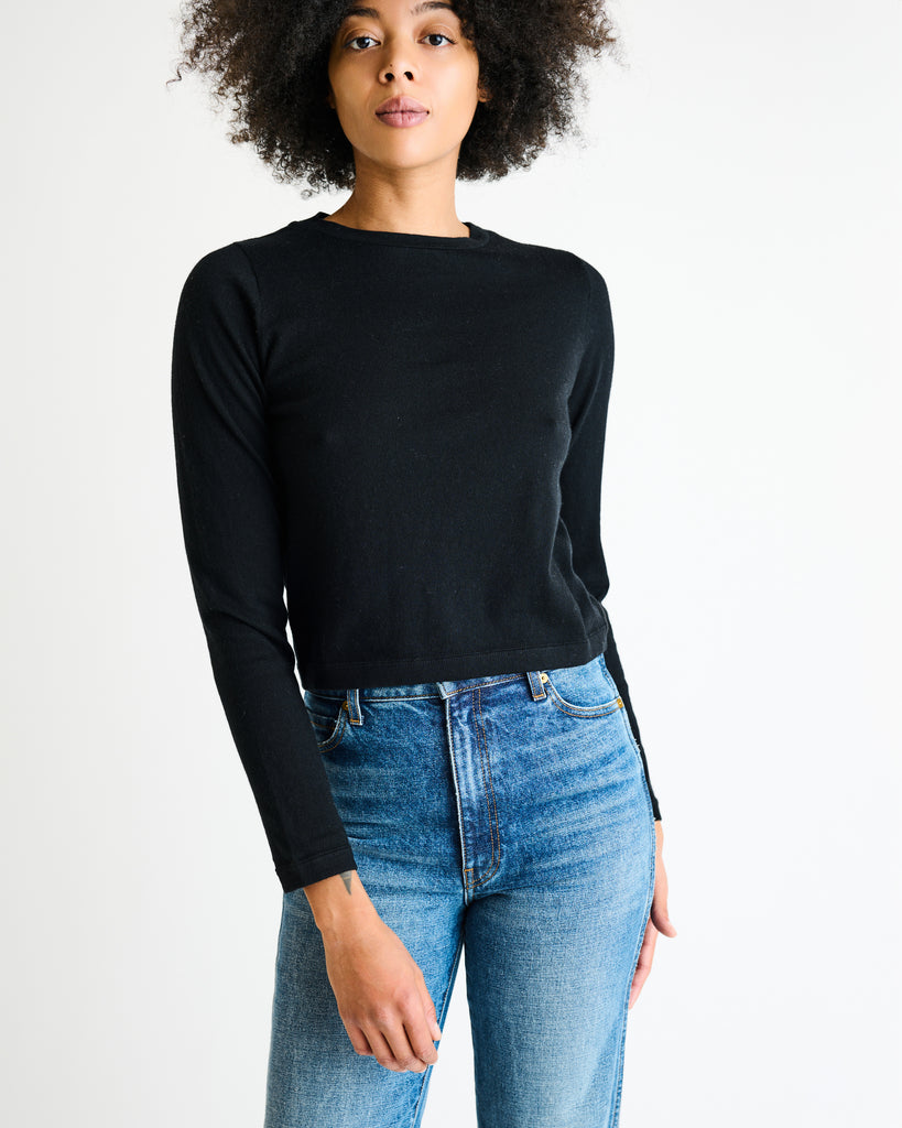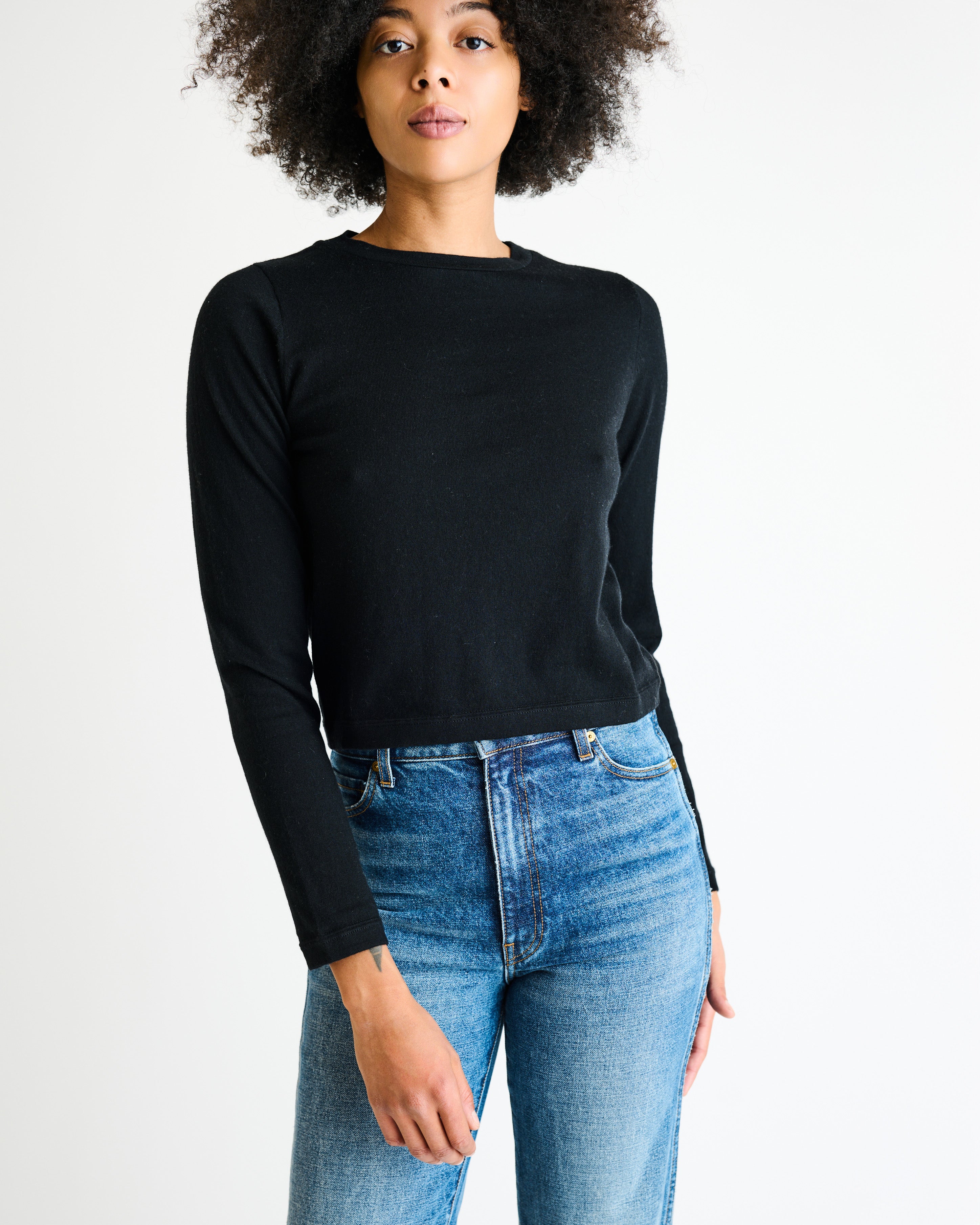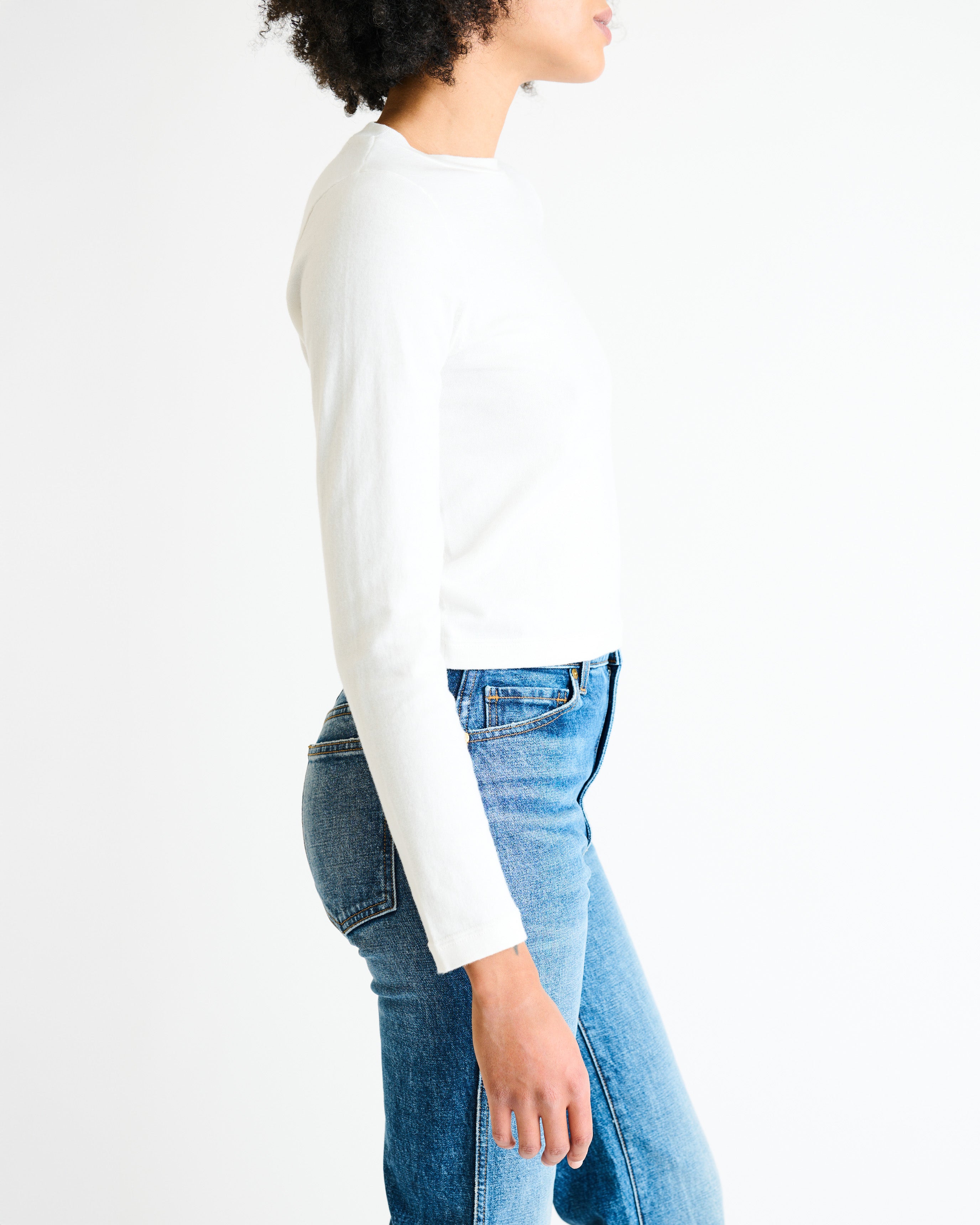 An essential long-sleeved crew-neck t-shirt in our breathable cotton-cashmere blend, fusing the rich softness of cashmere with the airy crispness of cotton. A close relative of the tina t-shirt style, the lisa top features long sleeves and a boxy, square fit.