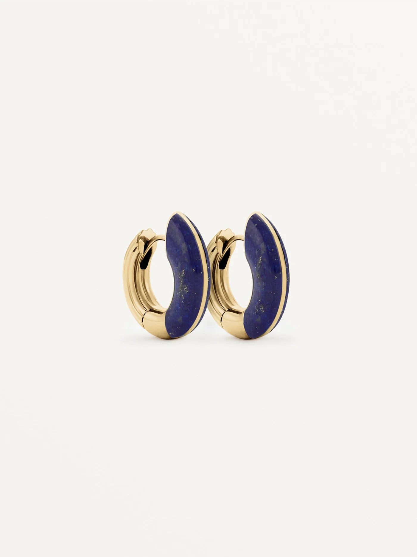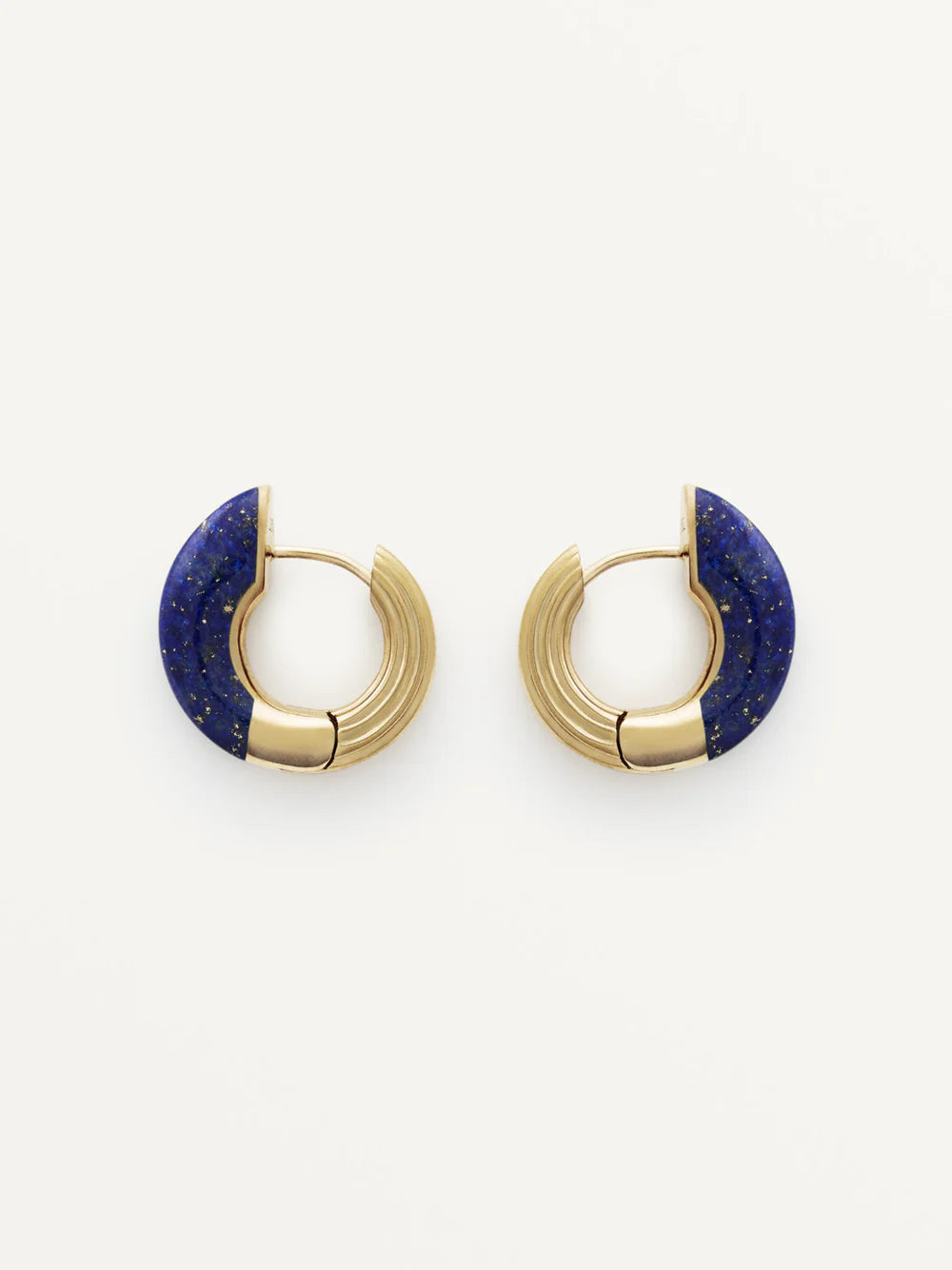 The earrings take on an asymmetrical arc shape, imprinted with delicate ridges, that gently envelop the ear lobe as it slightly descends in size. The larger gradient of the Locus Solus earrings is formed of coloured semi-precious stones, with the smaller half of the earring flowing smoothly into solid metal.