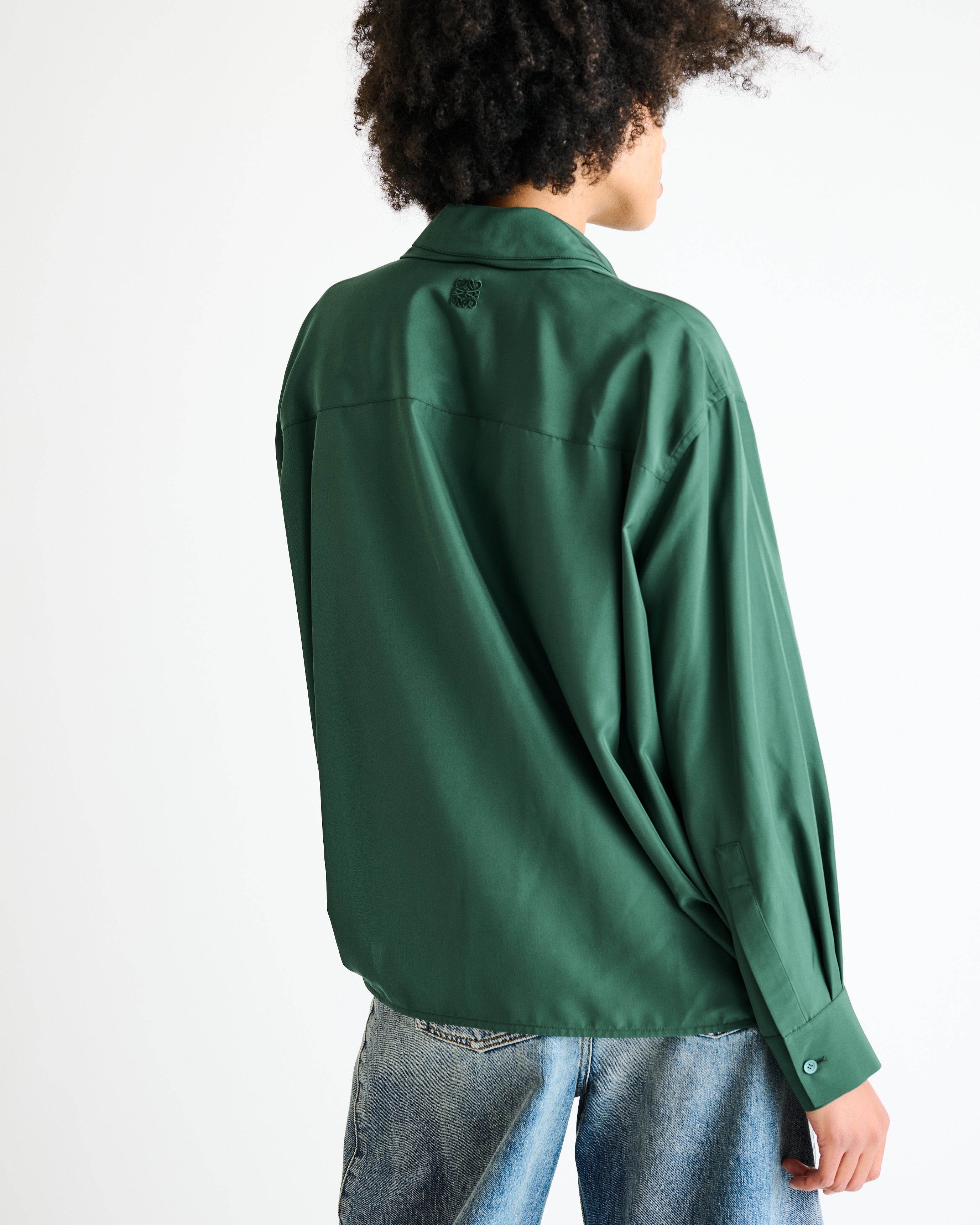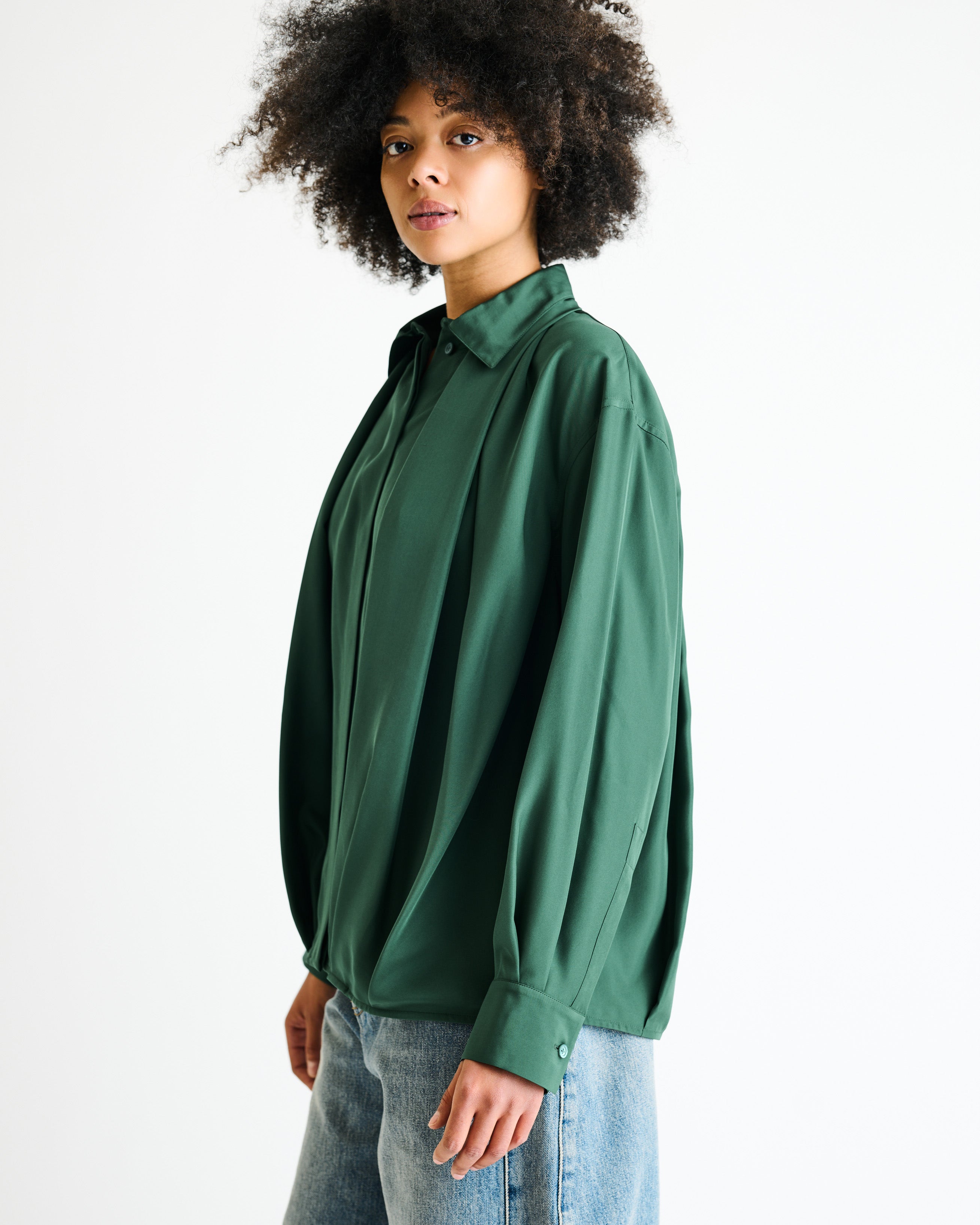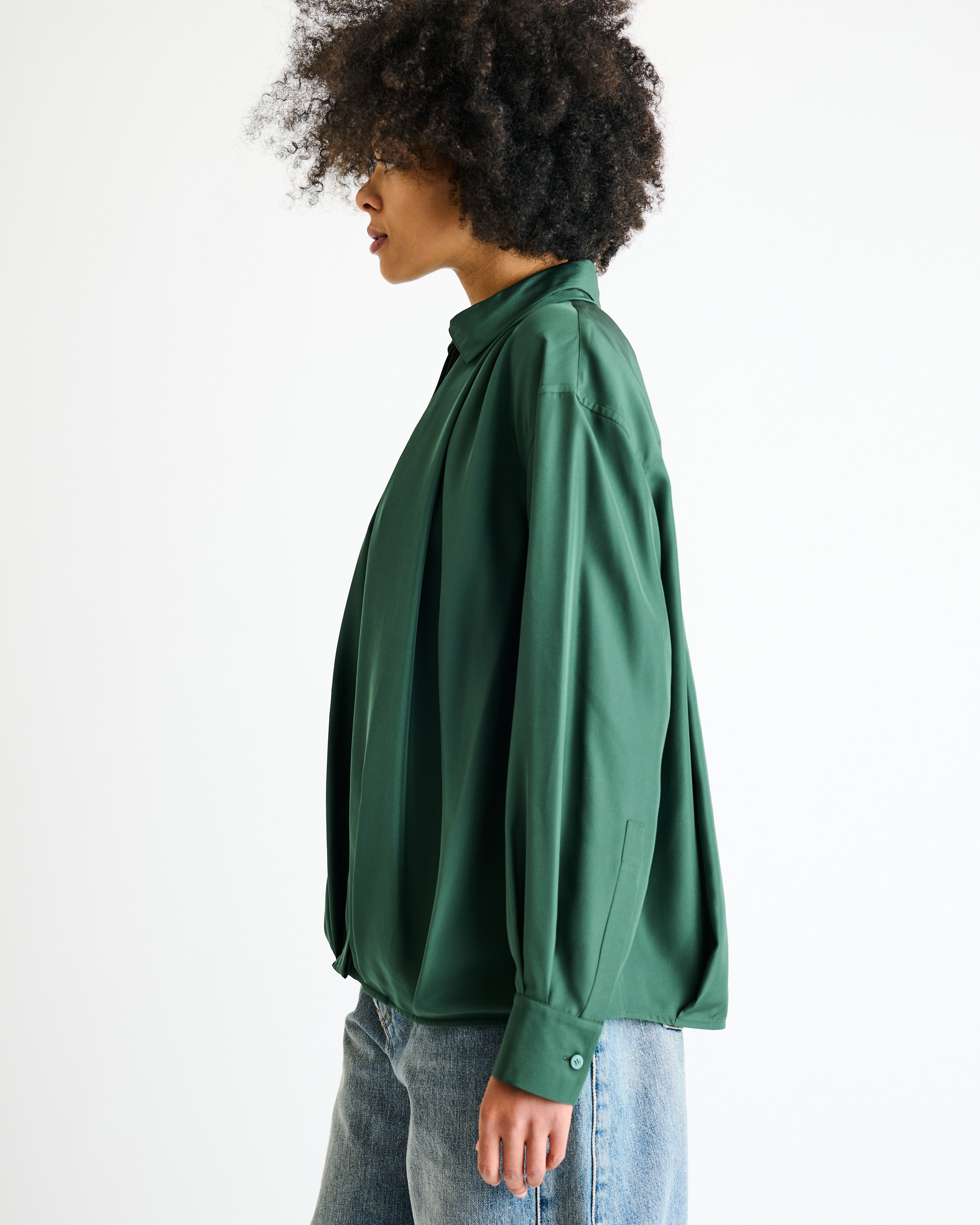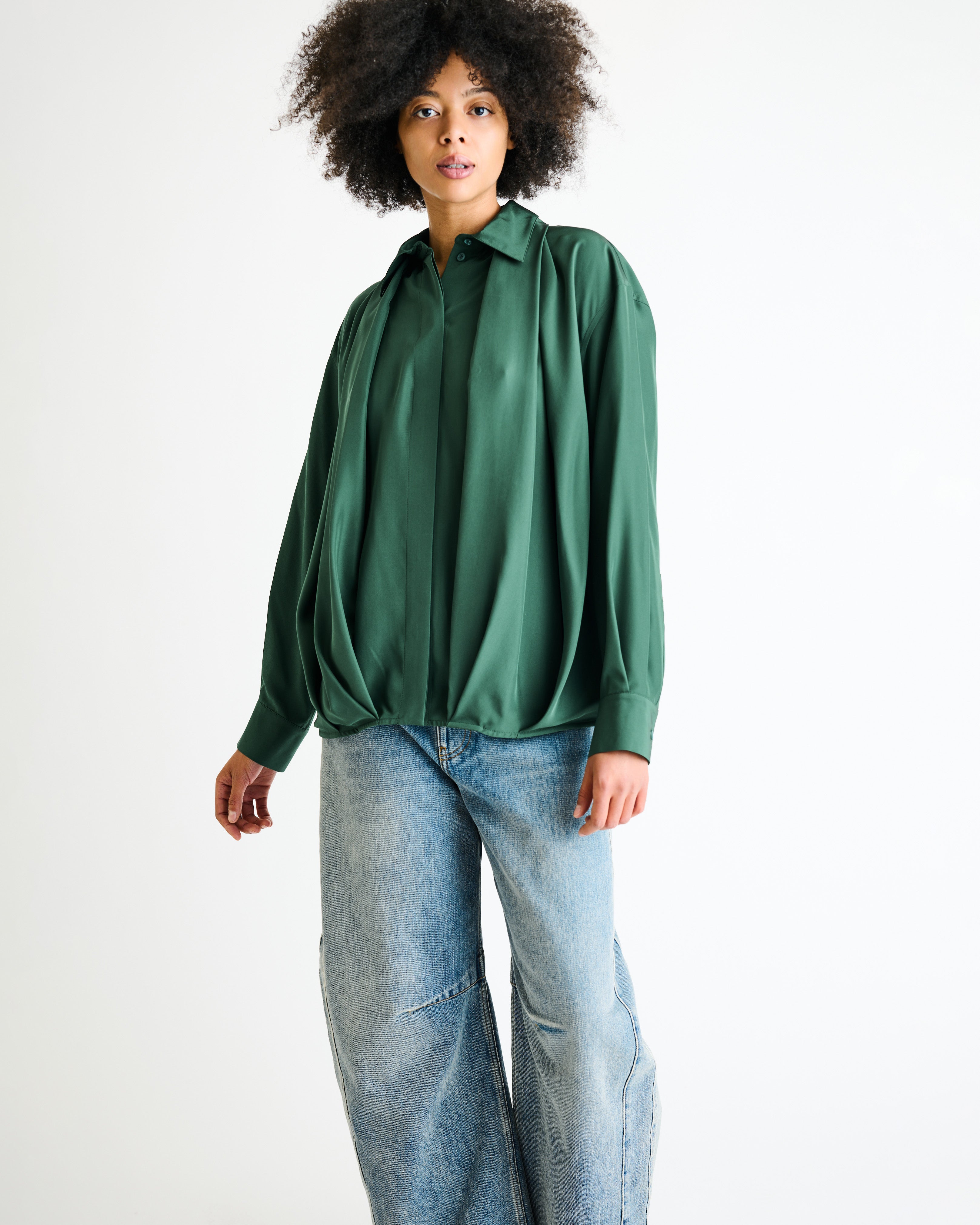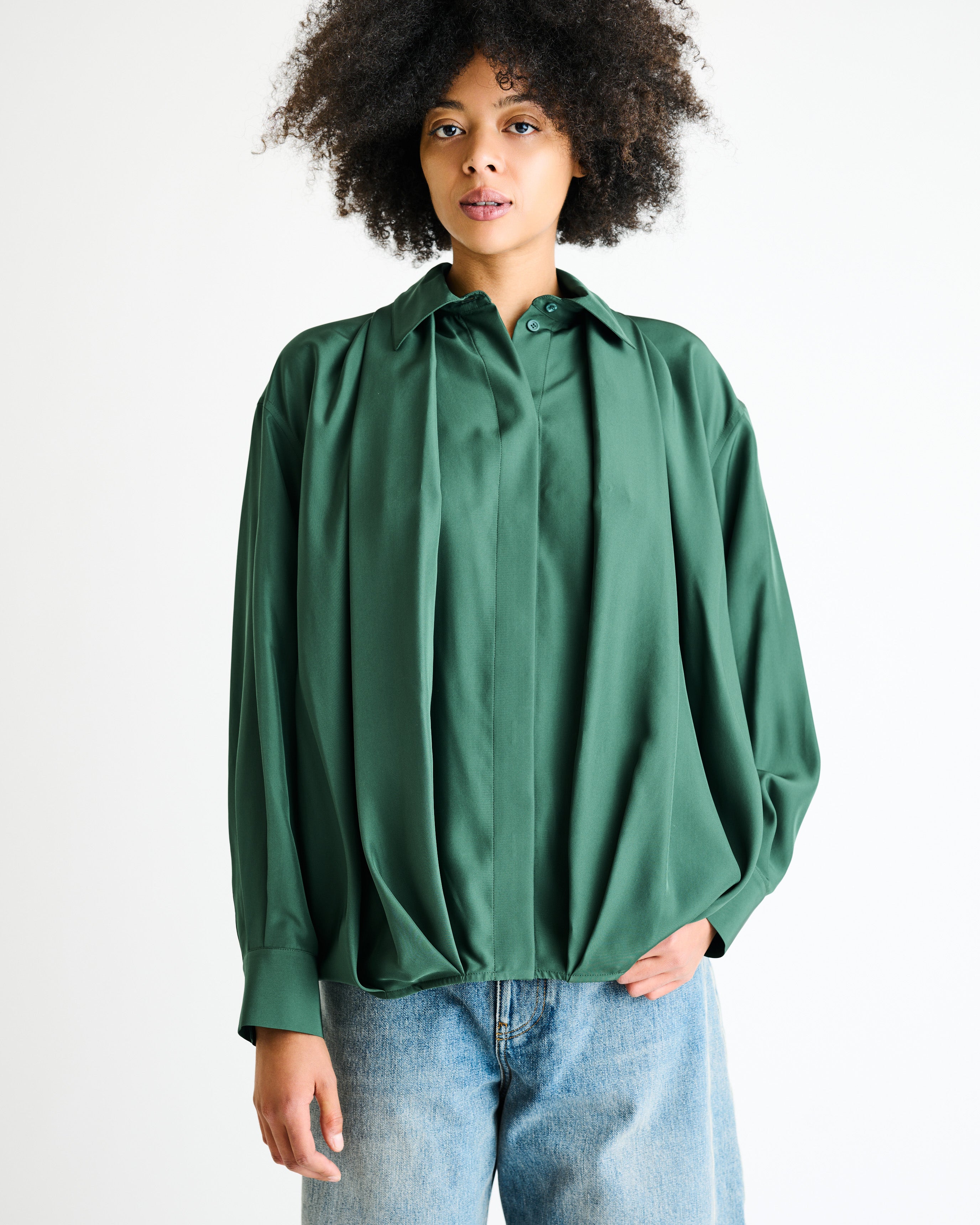 Shirt in lightweight matte silk poplin featuring a balloon silhouette with draping at the front.