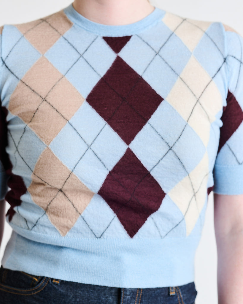 A lightweight intarsia-knit crewneck pullover that redefines argyle in an airy and lofty blend of cashmere and mohair from Italy. Finely ribbed details.