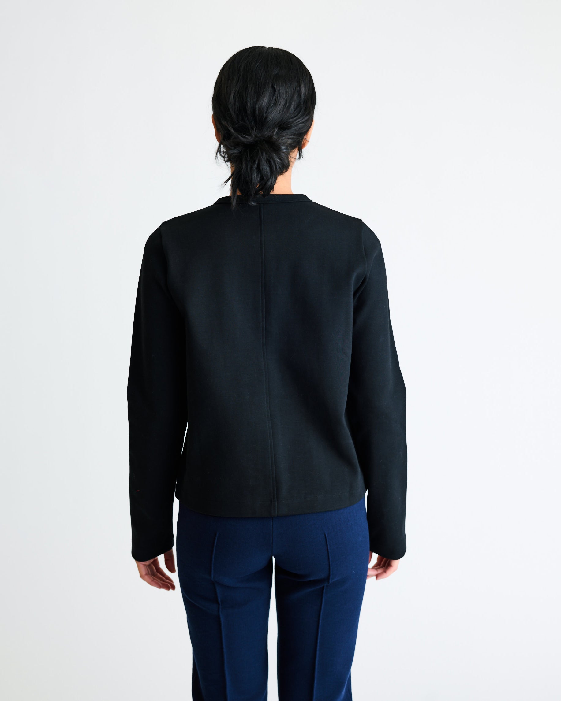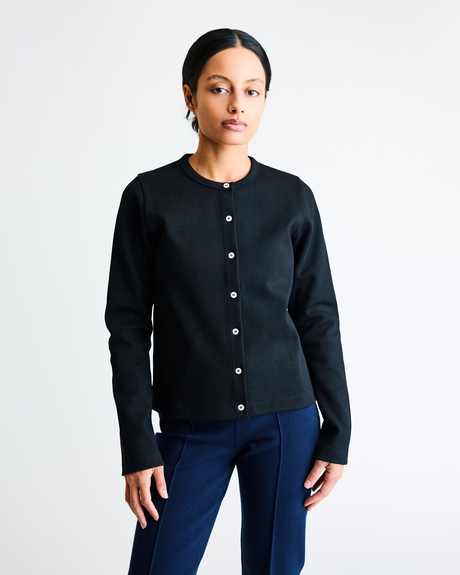 A timeless cardigan crafted from heavyweight structured fabric and finished with mother-of-pearl buttons.